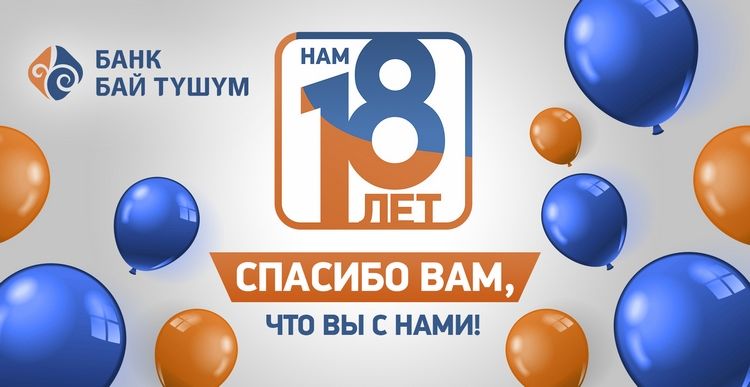 Двадцать четвертого октября банк «Бай-Тушум» празднует 18-летие. За такой короткий период «Бай-Тушум» прошел путь от финансового фонда до первой в Центральной Азии микрофинансовой компании, получившей банковскую лицензию. И все это благодаря доверию и поддержке своих клиентов.