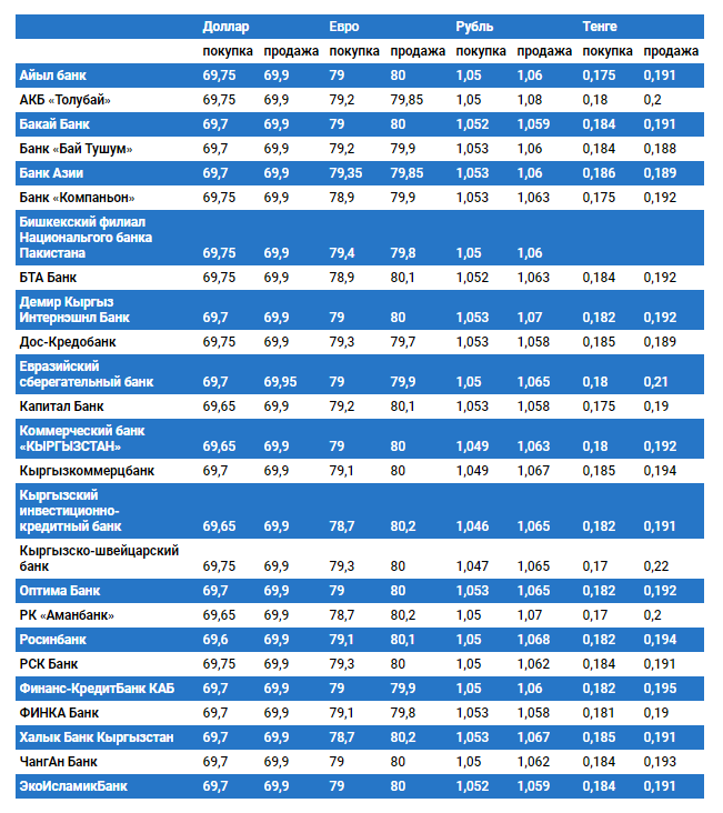Курс доллара в коммерческих банках Кыргызстана на 6 ноября