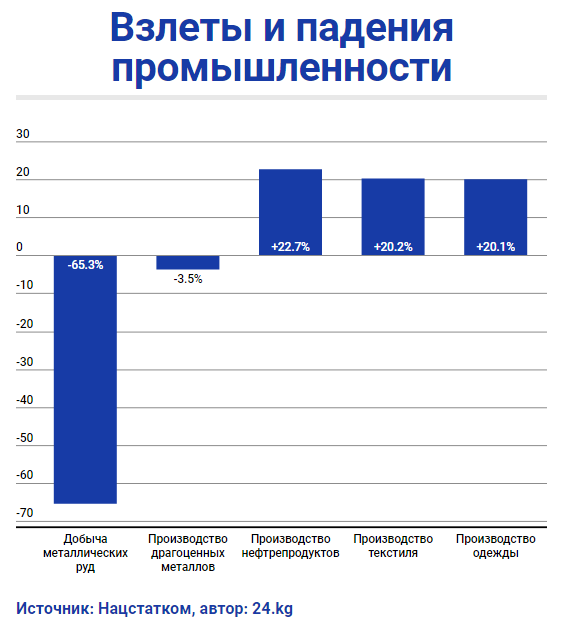 Стоит отметить, что падение промышленности в октябре замедлилось. Без предприятий по разработке месторождения Кумтор объем промышленного производства составил 120 миллиардов 415,7 миллиона сомов и вырос на 1,2 процента.