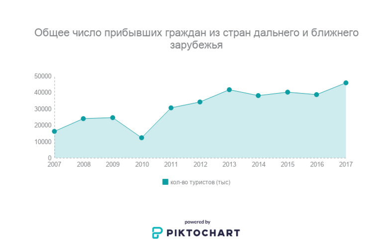 В 2010 году поток туристов сократился в два раза — с 2 миллионов 450 тысяч человек до 1 миллионов 224 тысяч. Это единственный значительный спад за взятый период.«Политическая ситуация в стране играет большую роль в туризме. Турист, приезжая в новое государство, прежде всего заботится о своей безопасности. В 2011-2012 годах мы начали давать пресс-конференции в Казахстане с участием их министра внутренних дел и губернаторов, чтобы люди знали, что у нас безопасно», — сказал заместитель директора департамента туризма при Министерстве культуры, информации и туризма Чубак Оморов.