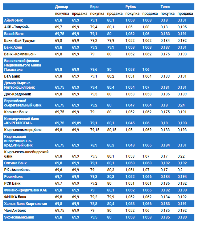 Курс доллара в коммерческих банках Кыргызстана на 30 ноября