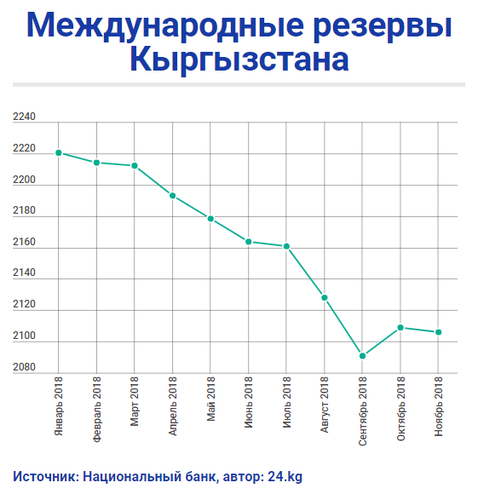 По итогам ноября валовые международные резервы Кыргызстана сократились на $2,7 миллиона. Об этом сообщил сайт Национального банка.