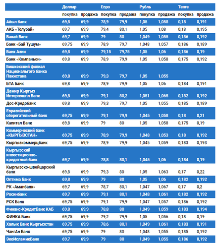 Курс доллара в коммерческих банках Кыргызстана на 13 декабря