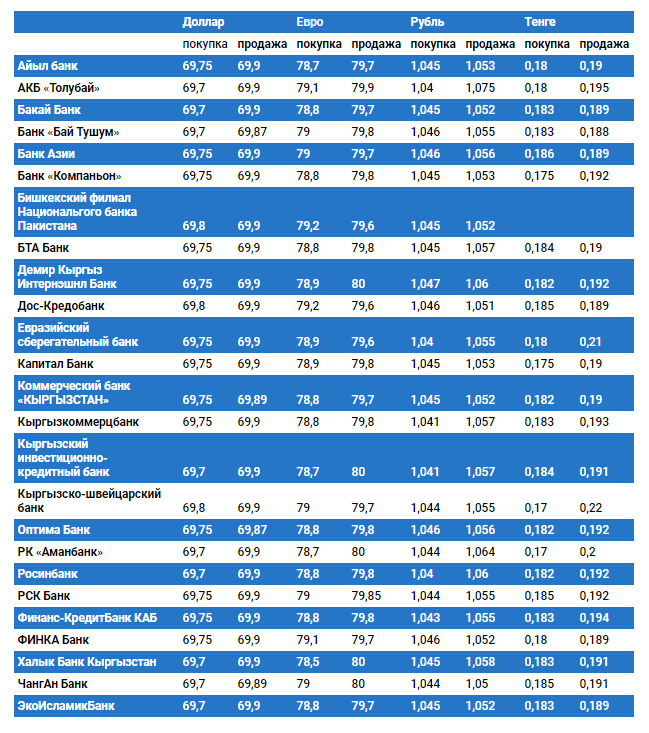 Курс доллара в коммерческих банках Кыргызстана на 18 декабря