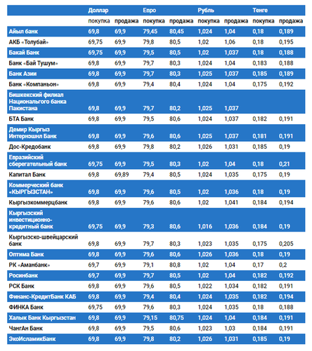 Курс доллара в коммерческих банках Кыргызстана на 21 декабря