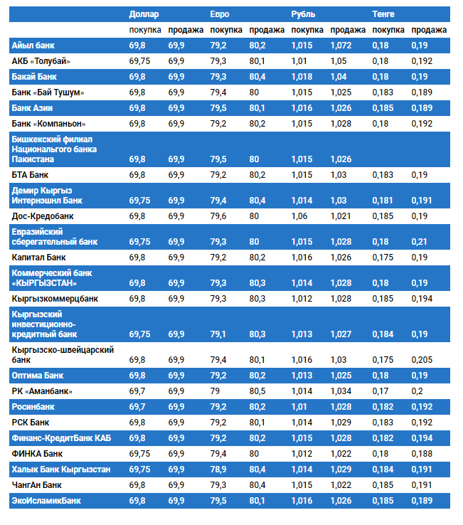 Курс доллара в коммерческих банках Кыргызстана на 26 декабря