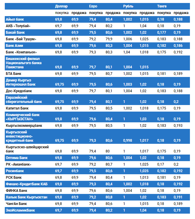 Курс доллара в коммерческих банках Кыргызстана на 28 декабря