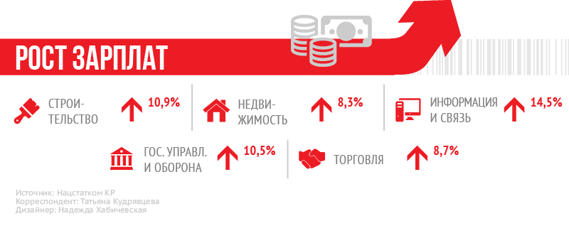 По данным Национального статистического комитета, средняя зарплата в Кыргызстане по итогам 2018 года составила 15 тысяч 747 сомов. Это на 5,9 процента больше, чем за аналогичный период 2017-го.