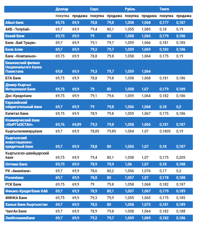 Курс доллара в коммерческих банках Кыргызстана на 7 февраля