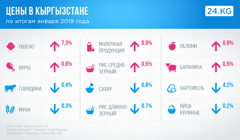 В январе 2019 года снижение потребительских цен и тарифов отметили в Таласской области (на 0,1 процента). В Иссык-Кульской они сохранялись на уровне предыдущего месяца, а максимальный рост цен и тарифов за этот период (0,6 процента) в Джалал-Абадской области.