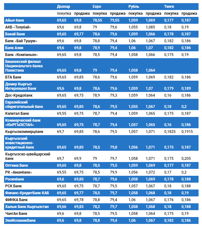 Курс доллара в коммерческих банках Кыргызстана на 22 февраля