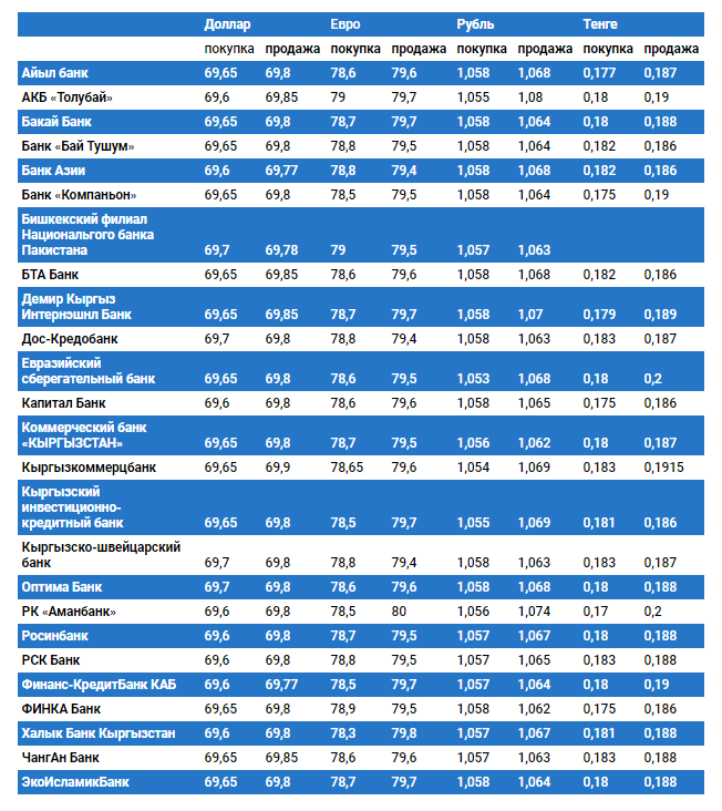 Курс доллара в коммерческих банках Кыргызстана на 5 марта