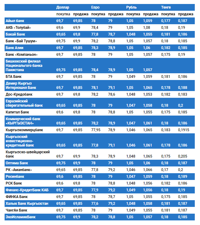 Курс доллара в коммерческих банках Кыргызстана на 11 марта