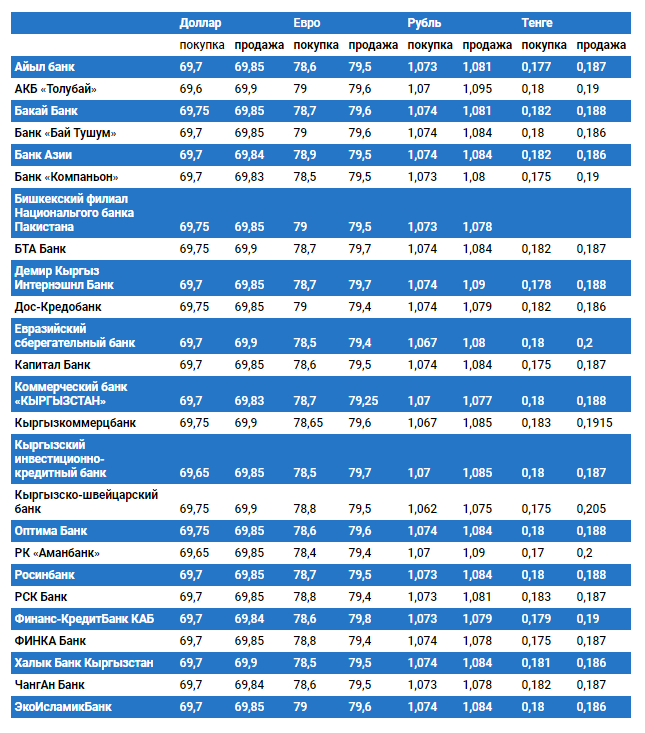 Курс доллара в коммерческих банках Кыргызстана на 18 марта