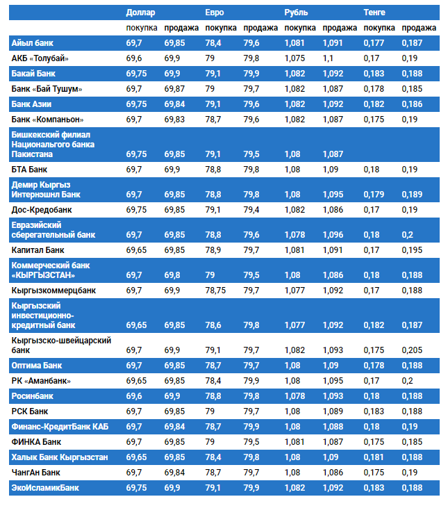 Курс доллара в коммерческих банках Кыргызстана на 20 марта