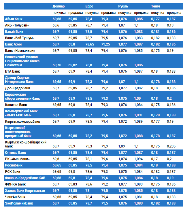 Курс доллара в коммерческих банках Кыргызстана на 25 марта