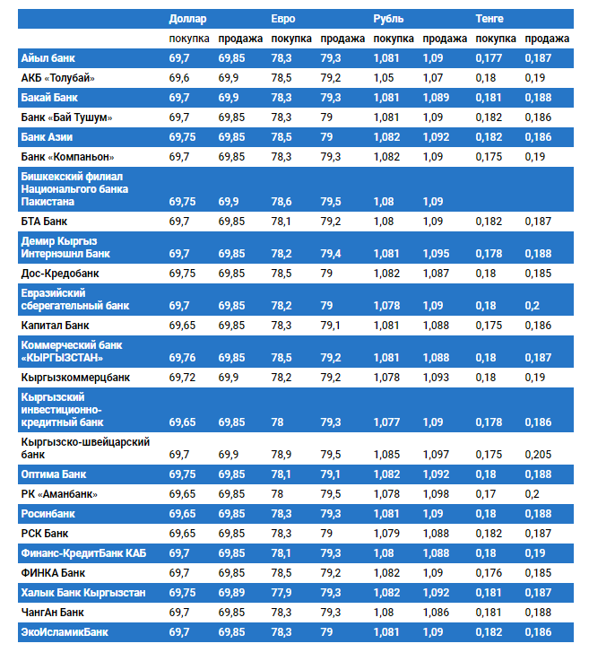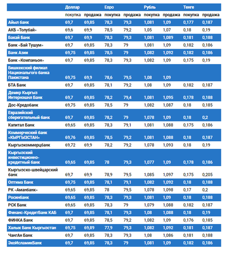 Курс доллара в коммерческих банках Кыргызстана на 27 марта