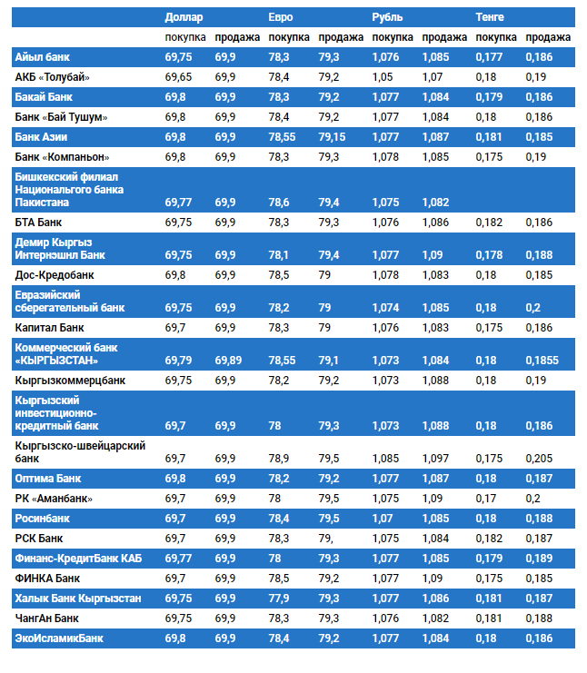 Курс доллара в коммерческих банках Кыргызстана на 28 марта