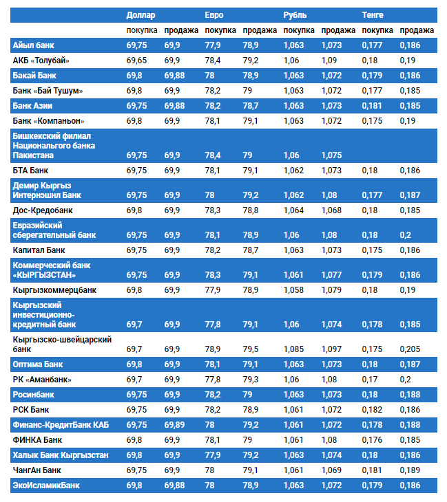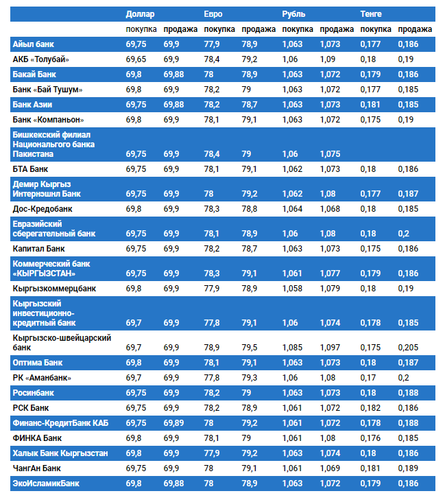 Курс доллара в коммерческих банках Кыргызстана на 1 апреля