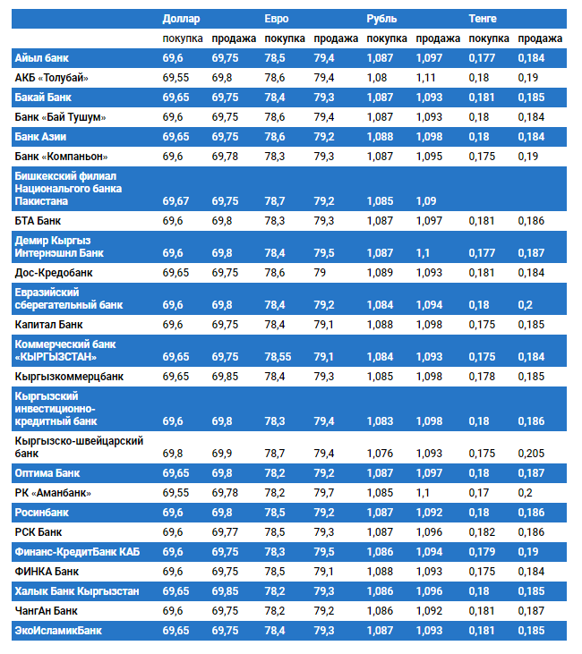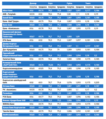 Курс доллара в коммерческих банках Кыргызстана на 18 апреля