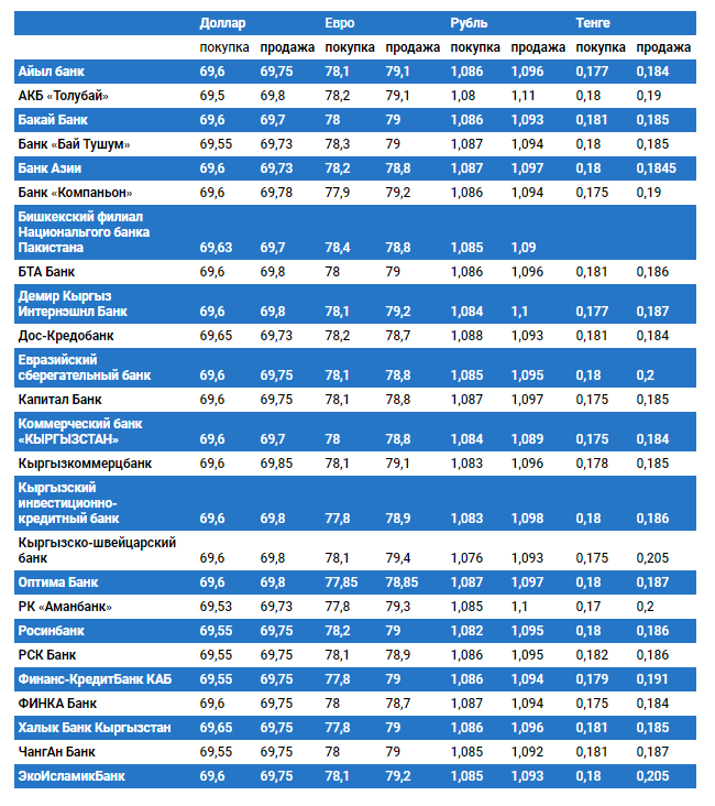 Курс доллара в коммерческих банках Кыргызстана на 19 апреля