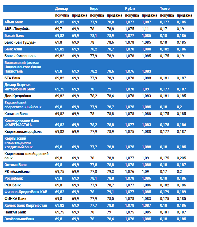 Курс доллара в коммерческих банках Кыргызстана на 16 мая