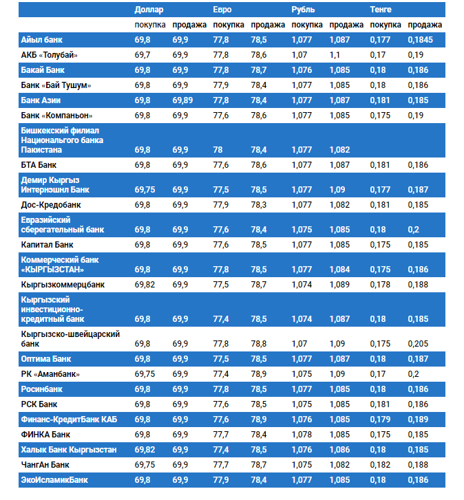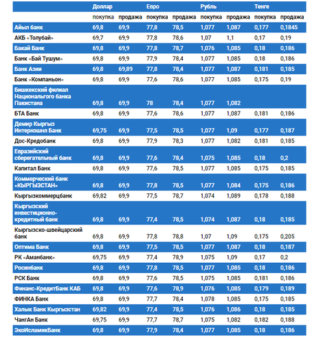 Курс доллара в коммерческих банках Кыргызстана на 20 мая