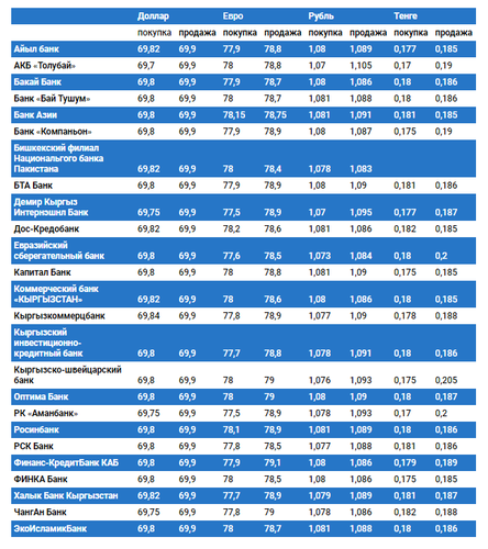 Курс доллара в коммерческих банках Кыргызстана на 27 мая