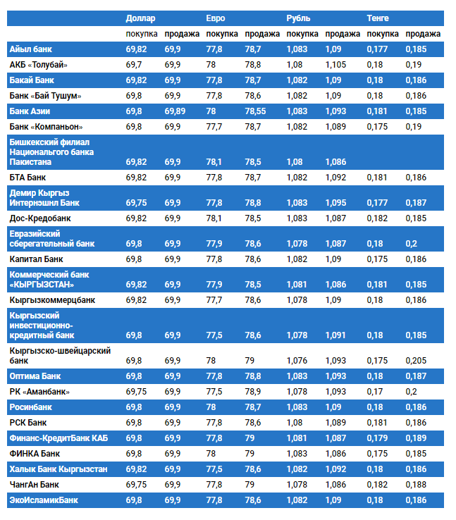 Курс доллара в коммерческих банках Кыргызстана на 28 мая