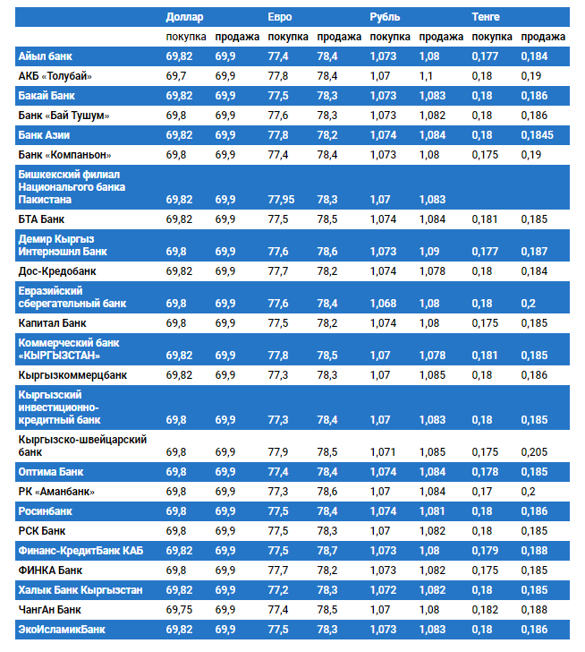 Курс доллара в коммерческих банках Кыргызстана на 30 мая