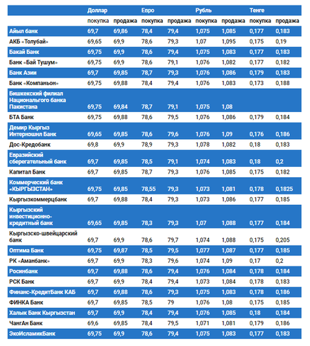 Курс доллара в коммерческих банках Кыргызстана на 11 июня