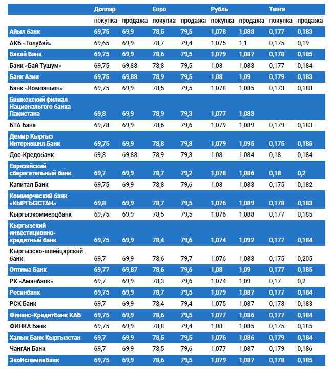 Курс доллара в коммерческих банках Кыргызстана на 12 июня