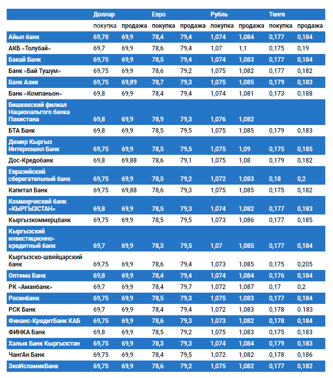 Курс доллара в коммерческих банках Кыргызстана на 13 июня