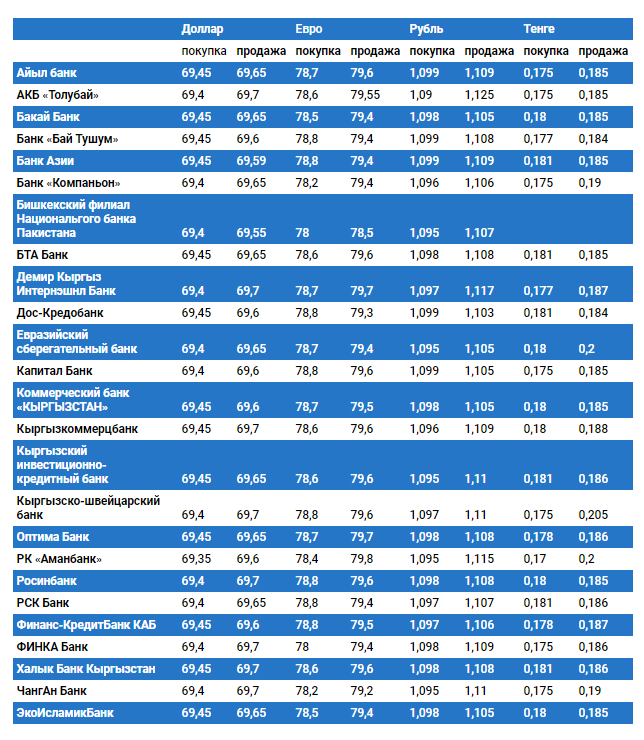Курс доллара в коммерческих банках Кыргызстана на 24 июня