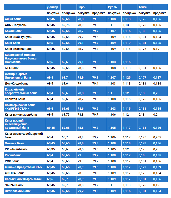 Курс доллара в коммерческих банках Кыргызстана на 25 июня