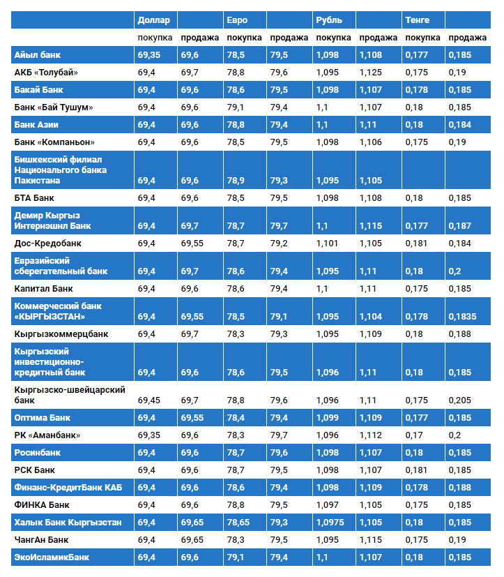 Курс доллара в коммерческих банках Кыргызстана на 28 июня