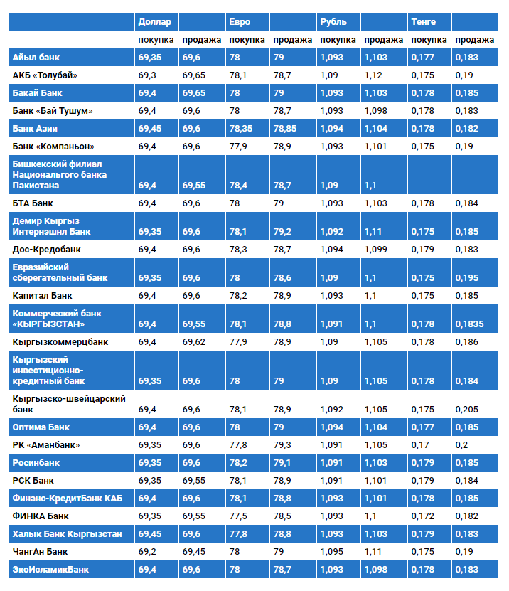 Курс доллара в коммерческих банках Кыргызстана на 3 июля