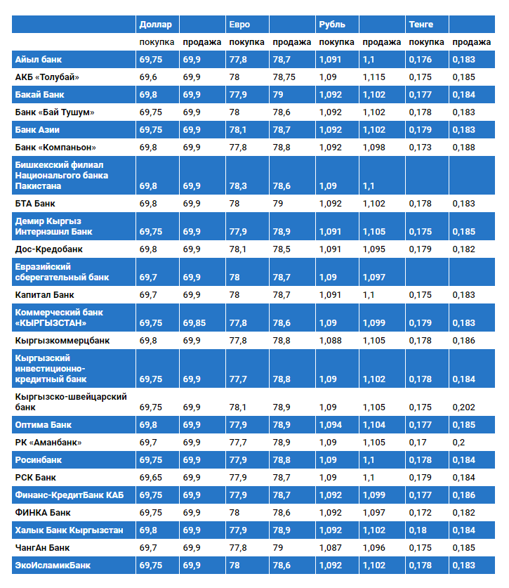 Курс доллара в коммерческих банках Кыргызстана на 10 июля