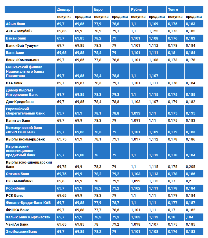 Курс доллара в коммерческих банках Кыргызстана на 11 июля