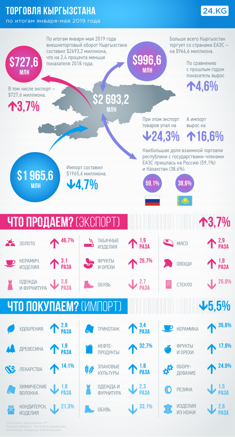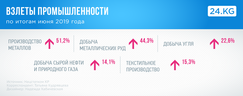 По итогам января — июня 2019 года в Кыргызстане произведено промышленной продукции на 127 миллиардов 522,3 миллиона сомов. Это на 19,7 процента больше, чем в 2018-м.