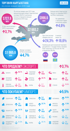 По итогам января — июня 2019 года ВВП Кыргызстана составил 232 миллиарда 560,1 миллиона сомов. По сравнению с 2018 годом он вырос на рекордные 6,4 процента.