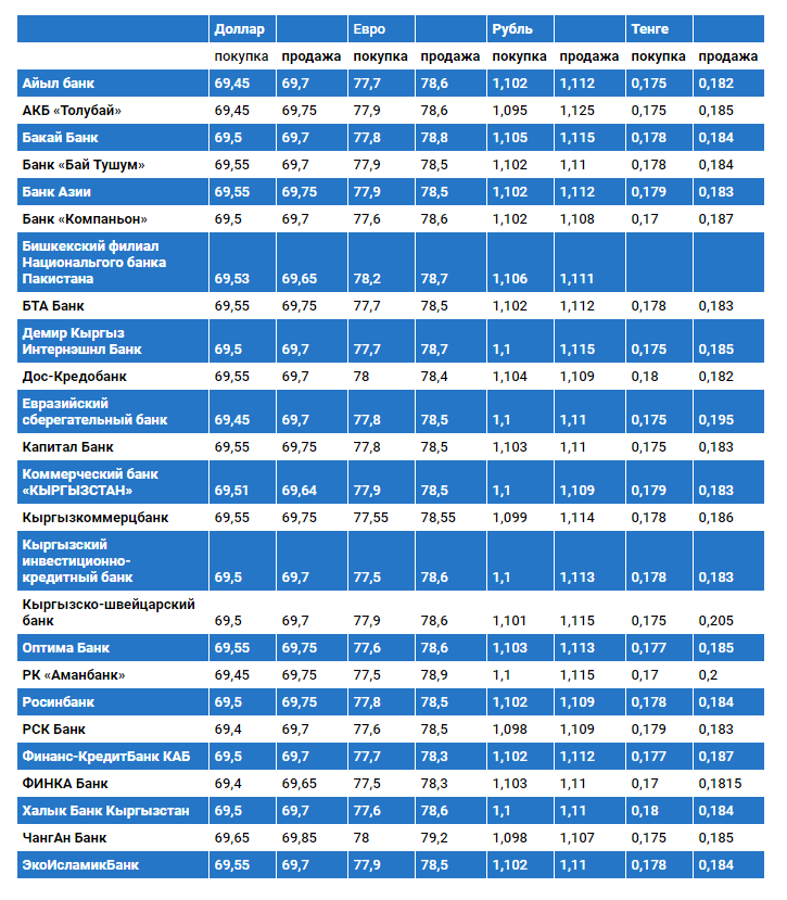 Курс доллара в коммерческих банках Кыргызстана на 17 июля