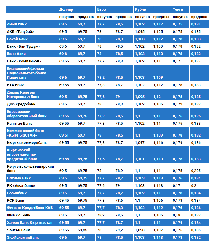 Курс доллара в коммерческих банках Кыргызстана на 22 июля