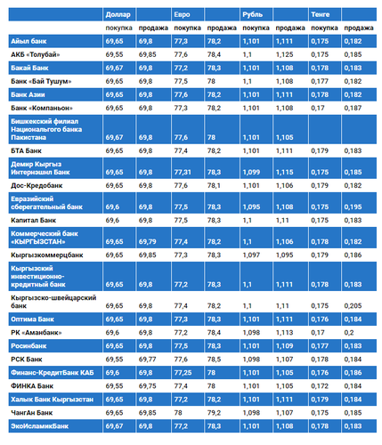 Курс доллара в коммерческих банках Кыргызстана на 24 июля