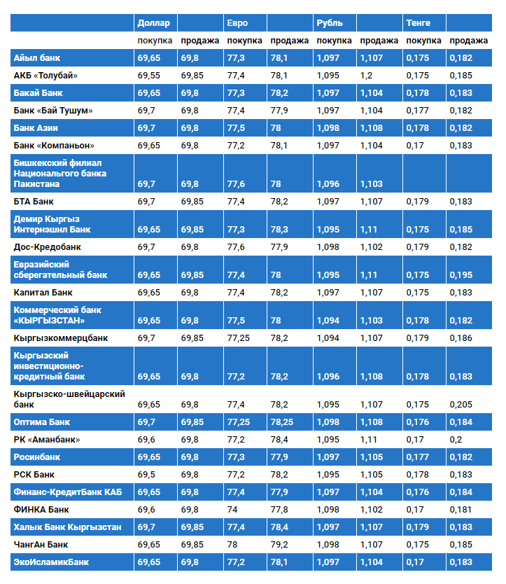 Курс доллара в коммерческих банках Кыргызстана на 30 июля