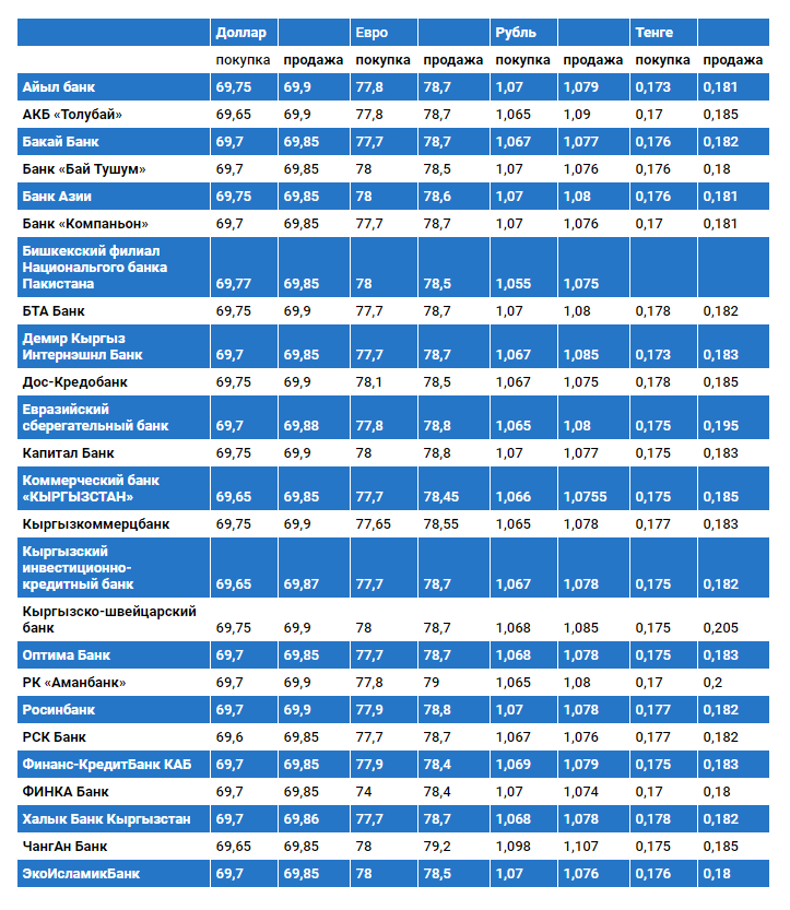 Курс доллара в коммерческих банках Кыргызстана на 9 августа