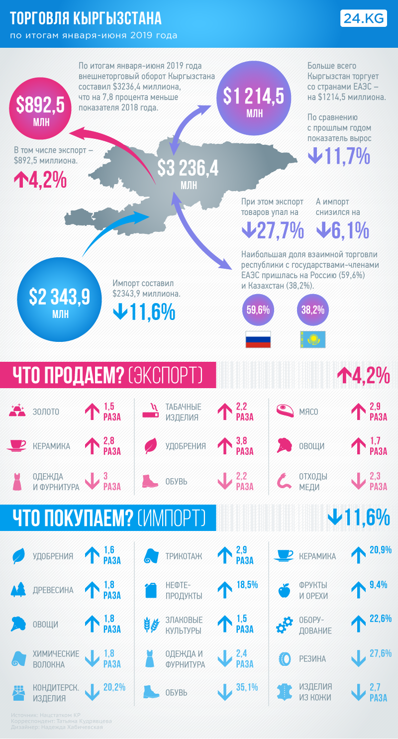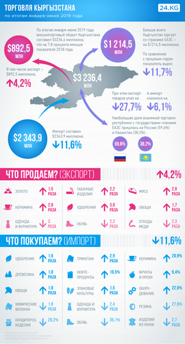 По итогам января — июля 2019 года ВВП Кыргызстана составил 284 миллиарда 417 миллионов сомов. По сравнению с 2018-м он вырос на рекордные 6,9 процента.