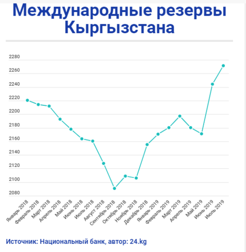 По итогам июля 2019 года валовые международные резервы Кыргызстана выросли на $26,82 миллиона. Об этом сообщили в Национальном банке.