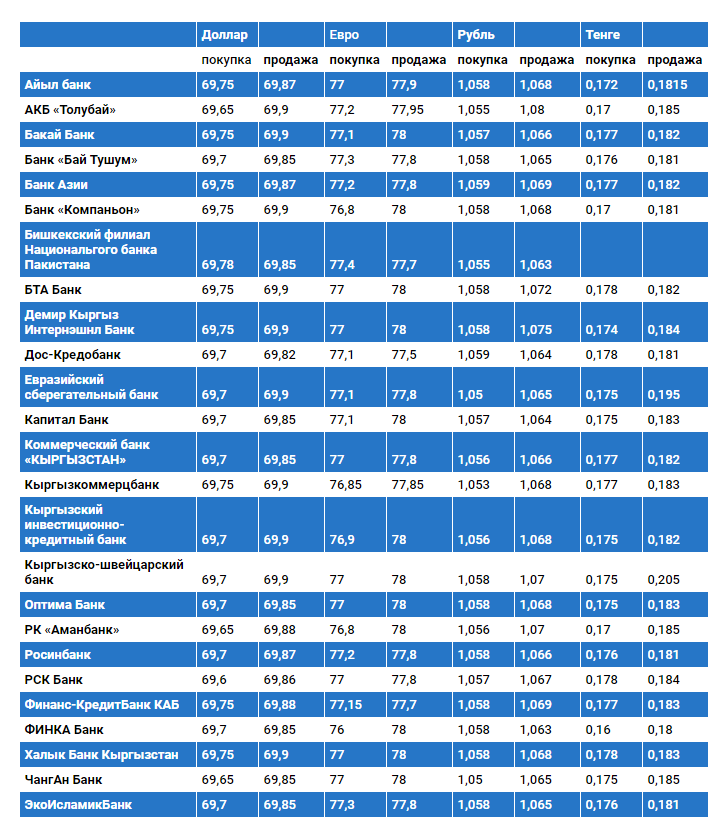 Курс доллара в коммерческих банках Кыргызстана на 22 августа