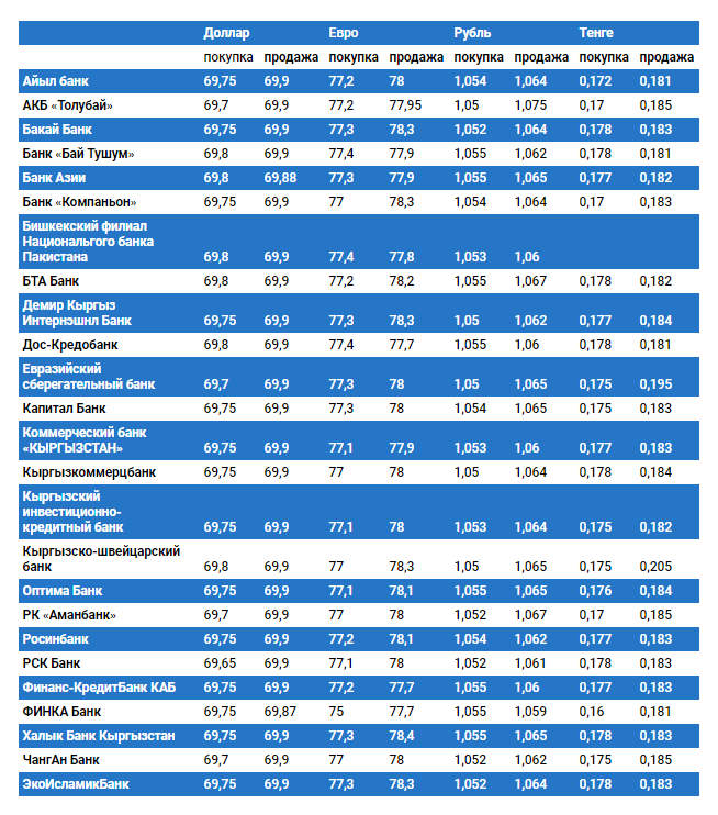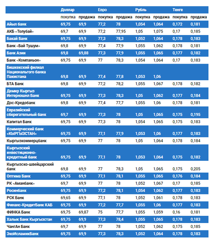 Курс доллара в коммерческих банках Кыргызстана на 27 августа